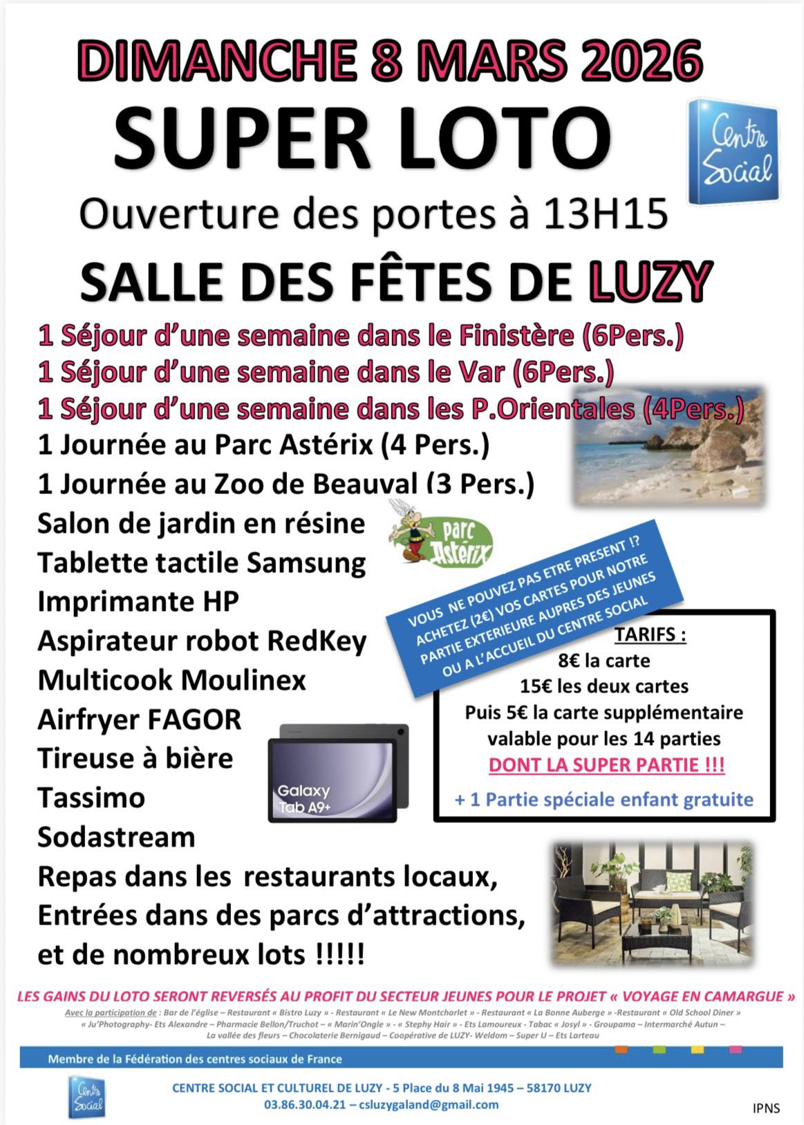 N’oubliez pas notre SUPER LOTO au profit du séjour en Camargue des jeunes !Nous remercions nos partenaires, d’avoir encore une fois répondu présent!