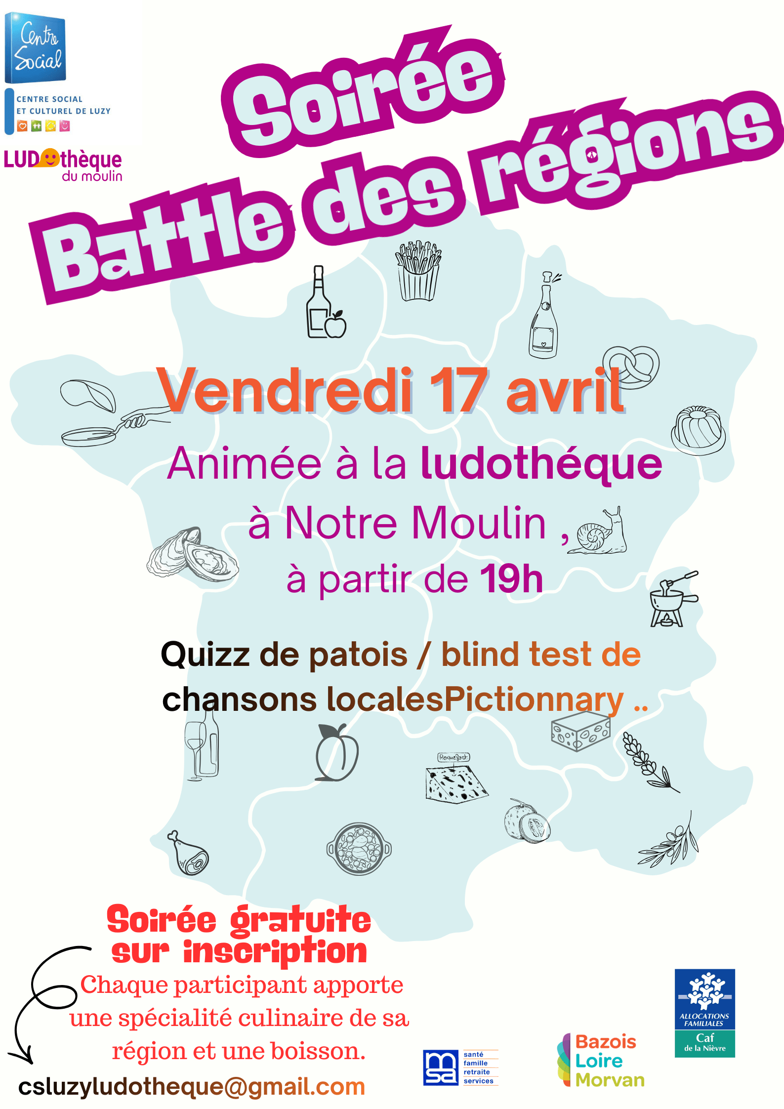 Merci d’envoyer un petit message à Csluzyludotheque@gmail.com pour confirmer votre présence en précisant :