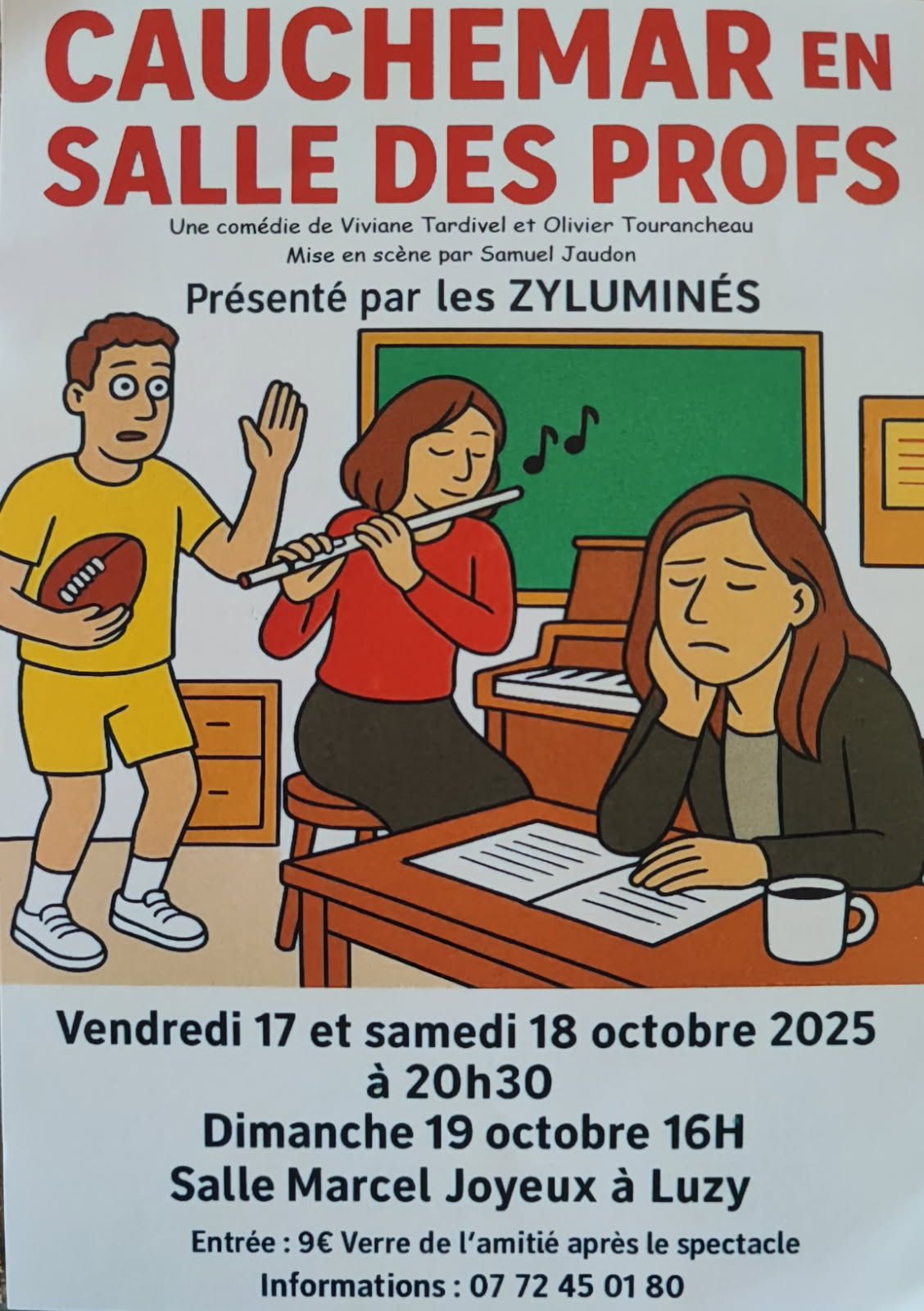 Pièce de théâtre “cauchemar en salle des profs ” de Viviane Tardivel et Olivier Tourancheau, mise en scène par Samuel Jaudon.